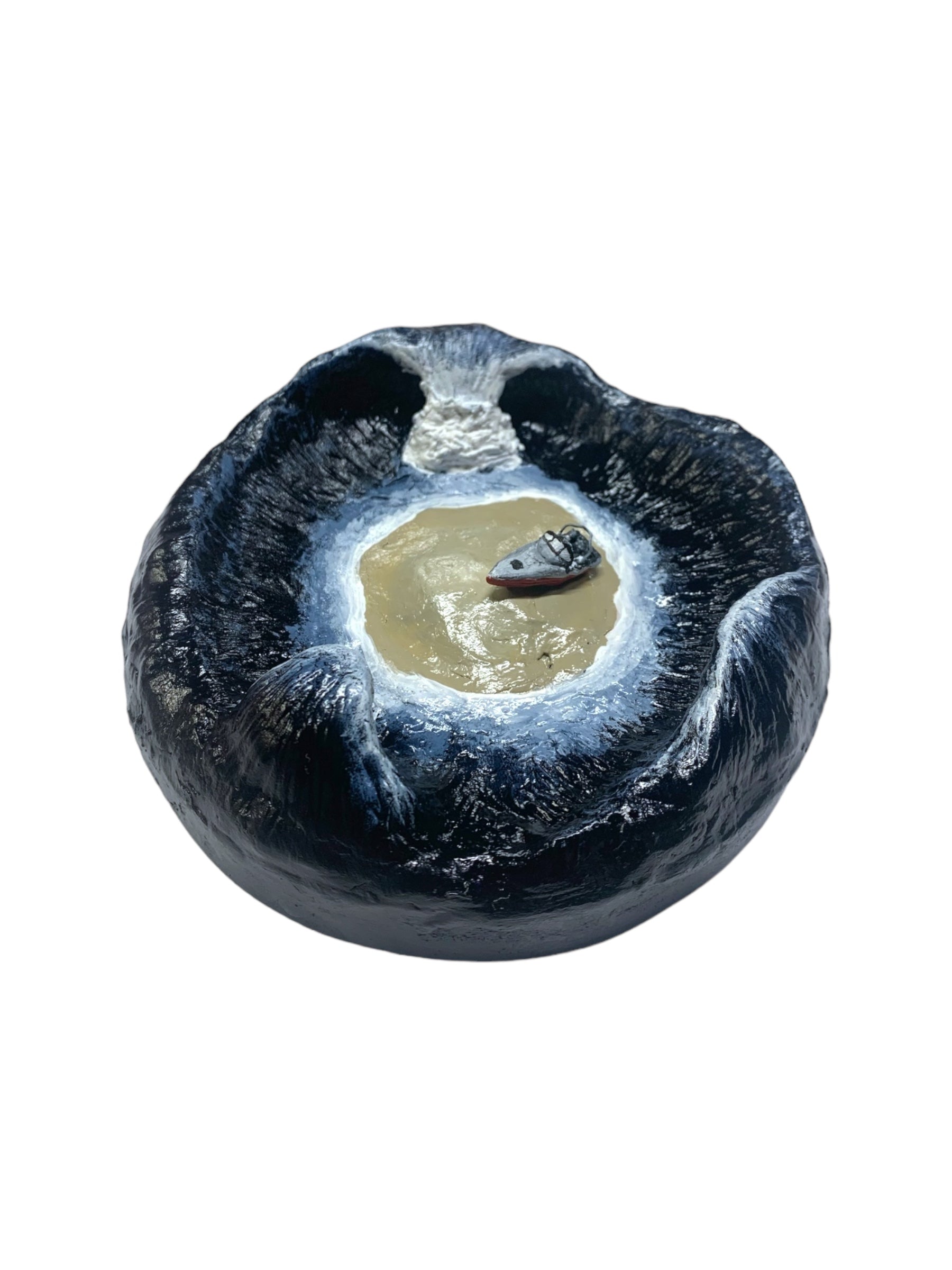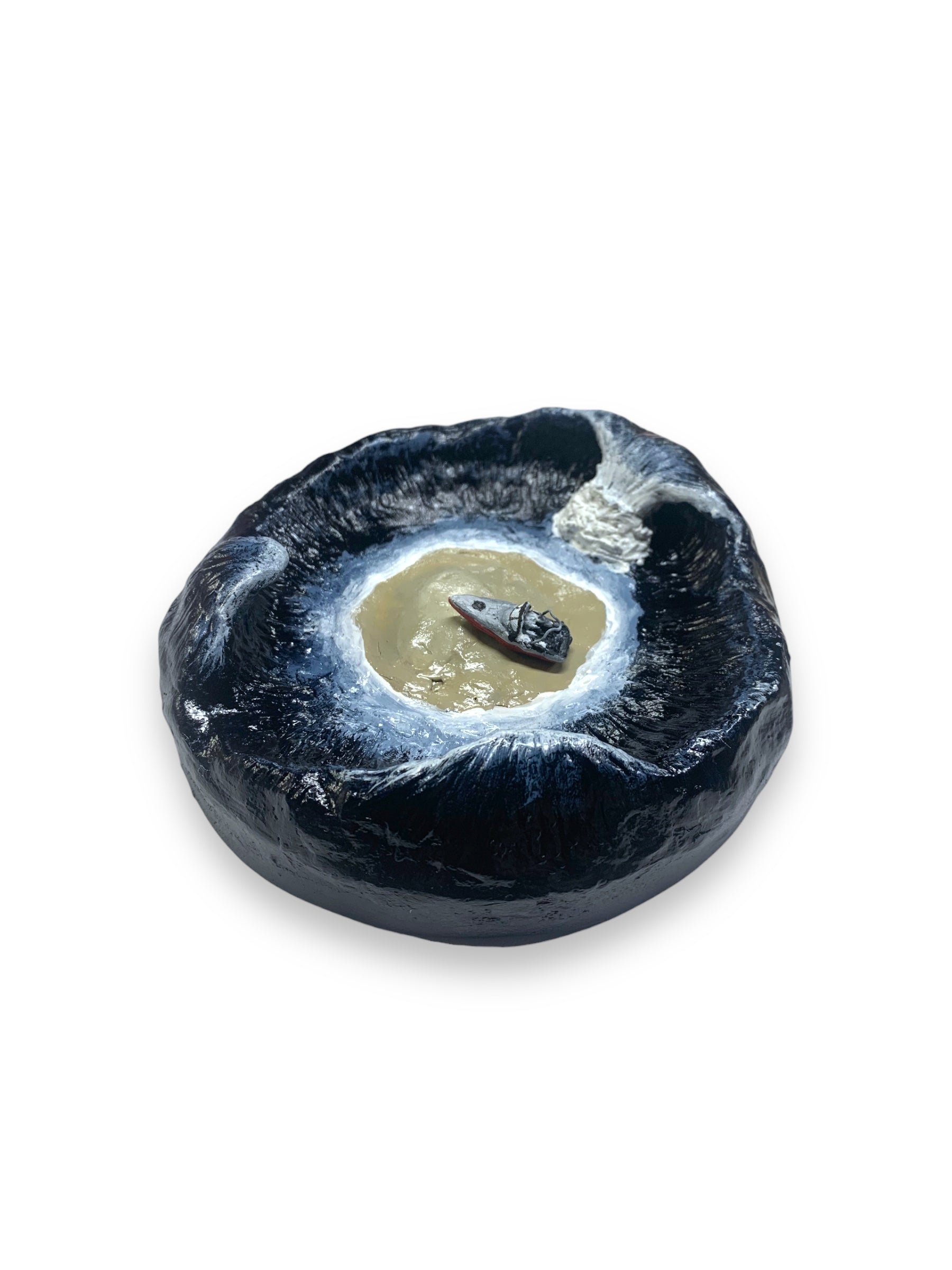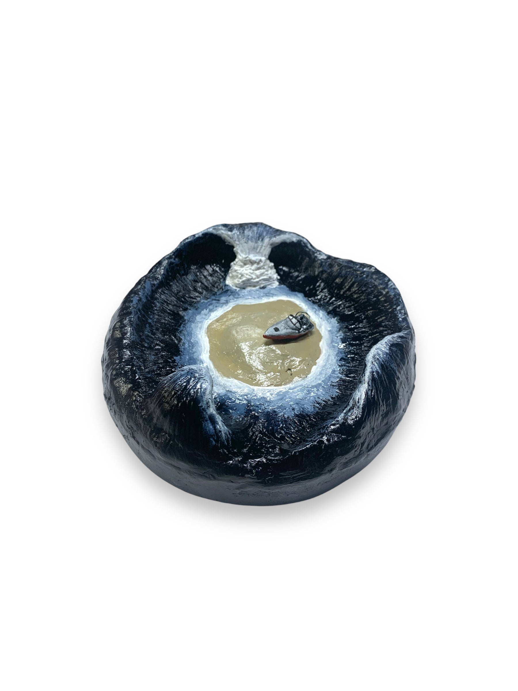 Clay sculpture tray painted with acrylic on a marine ply base.
